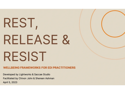 Cultural training to support EDI practitioner with wellness tools that reinforce practices of rest, release and resistance.
